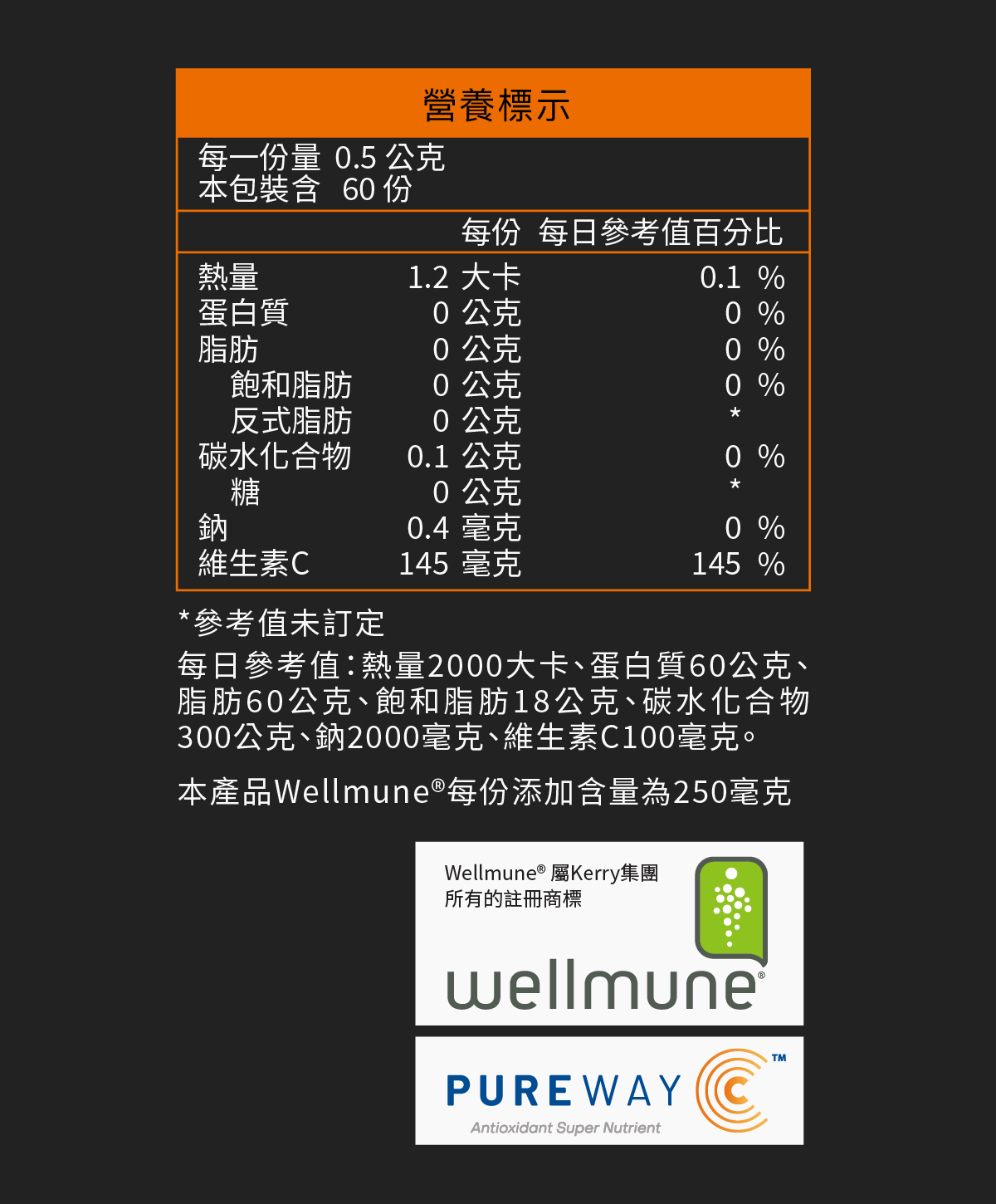 添加Wellmune® 酵母β-葡聚醣與PUREWAY-C®維生素C